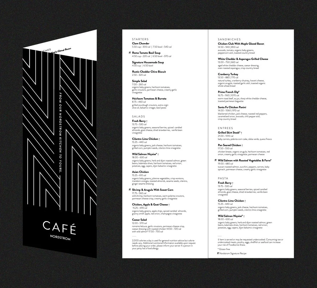 Established and designed a packaging system, utilizing Nordstrom’s brand patterns, for the Restaurant Division that consisted of a full suite of deliverables spanning menus, jar labels, coffee cups/sleeves, to-go containers and the premium line of chocolate sold exclusively in-store, Nordstrom Makers.